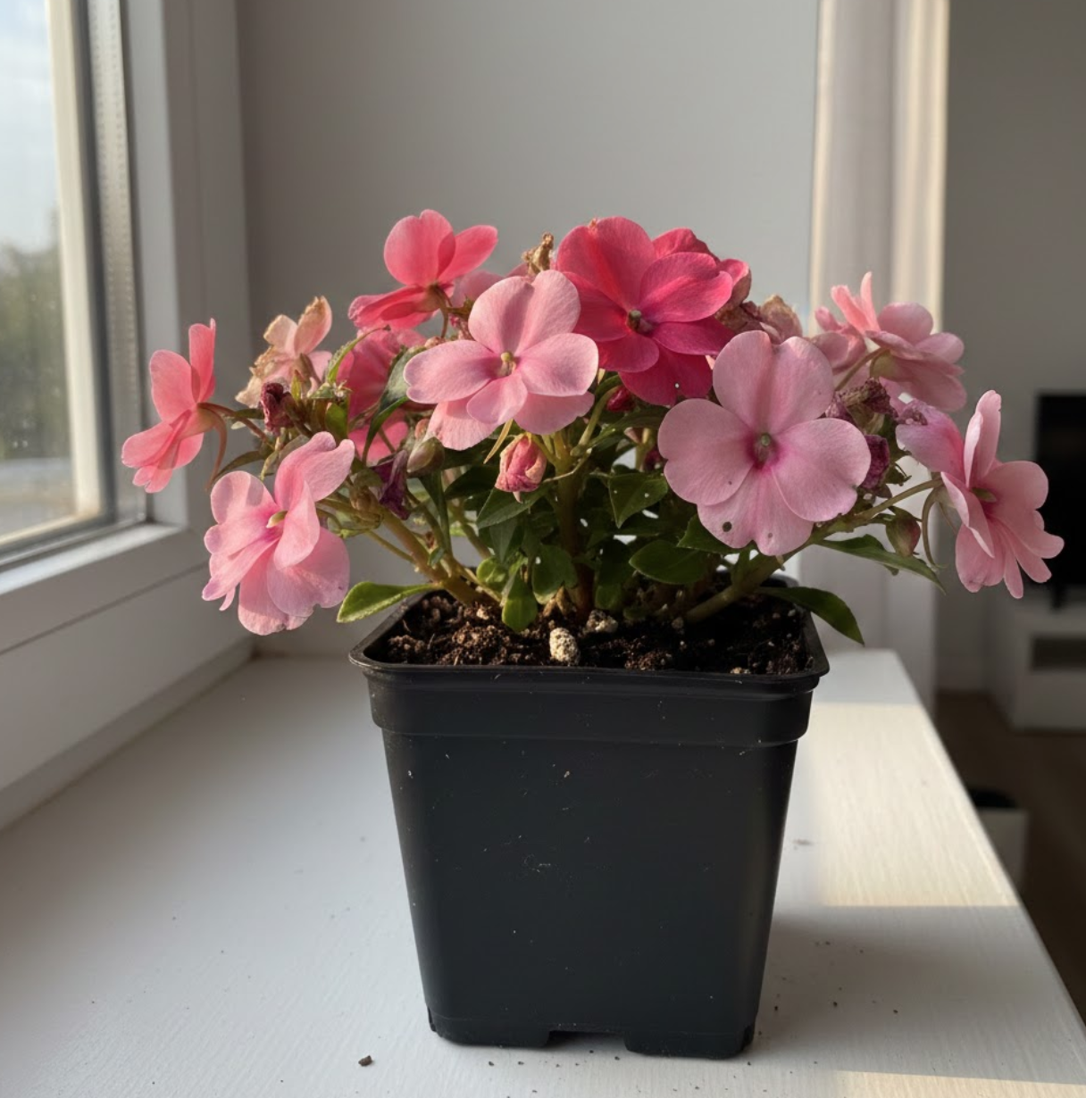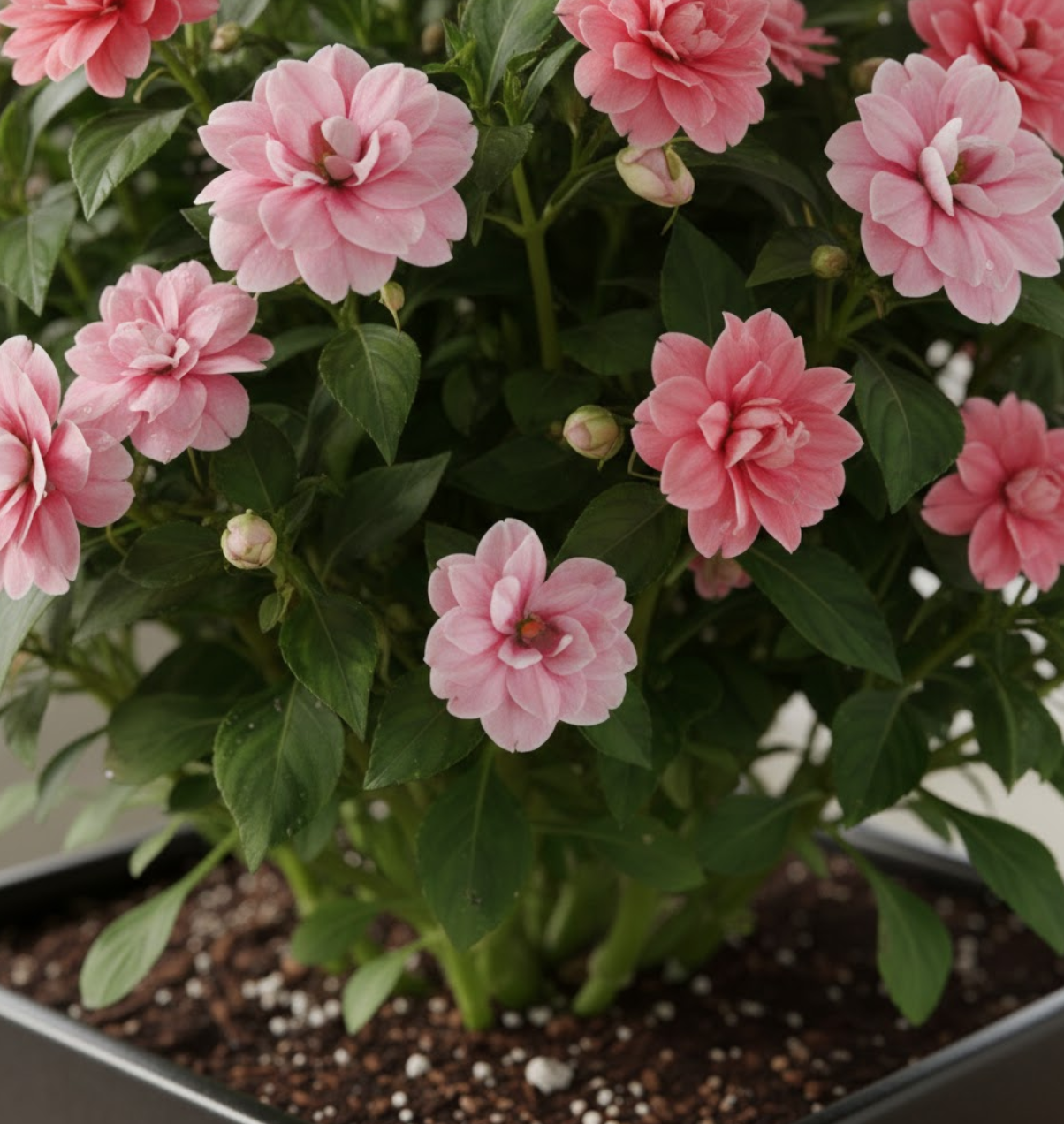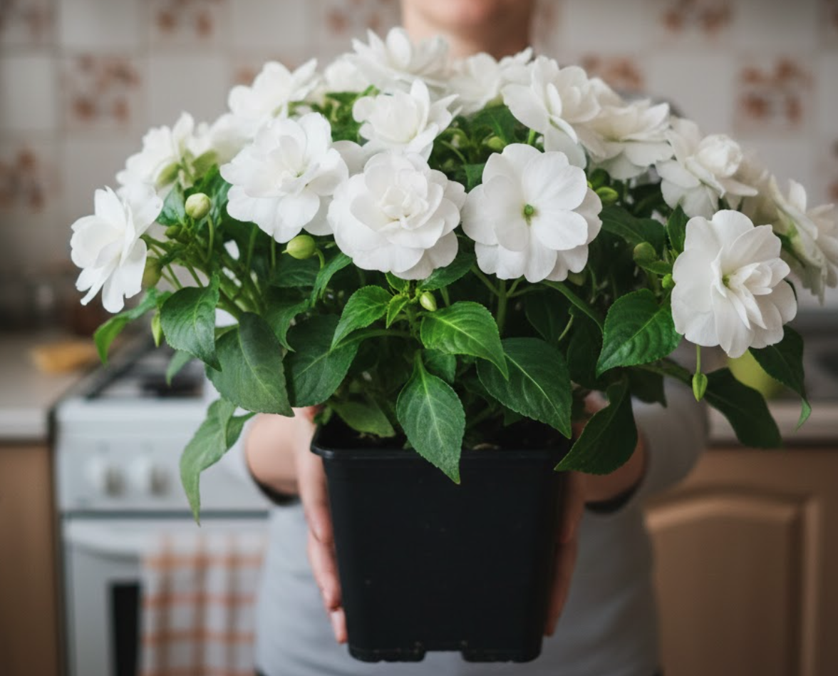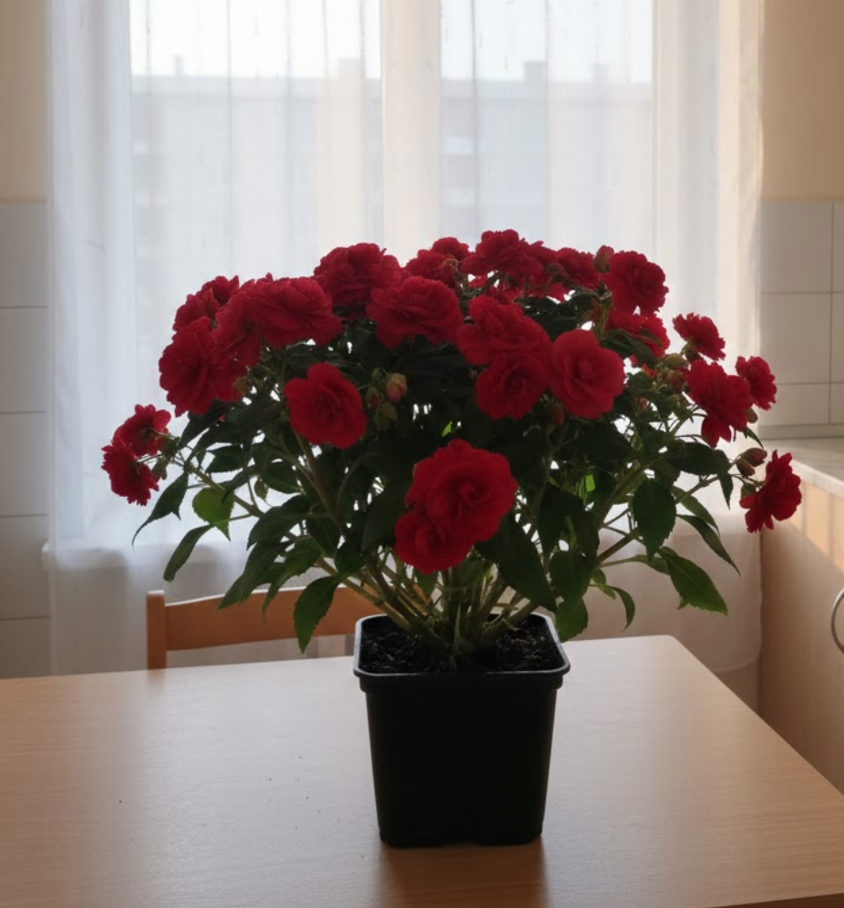 Кімнатний махровий бальзамін «Навруз»: перші бутони вже через 35–42 днів — до 6 хвиль цвітіння щороку