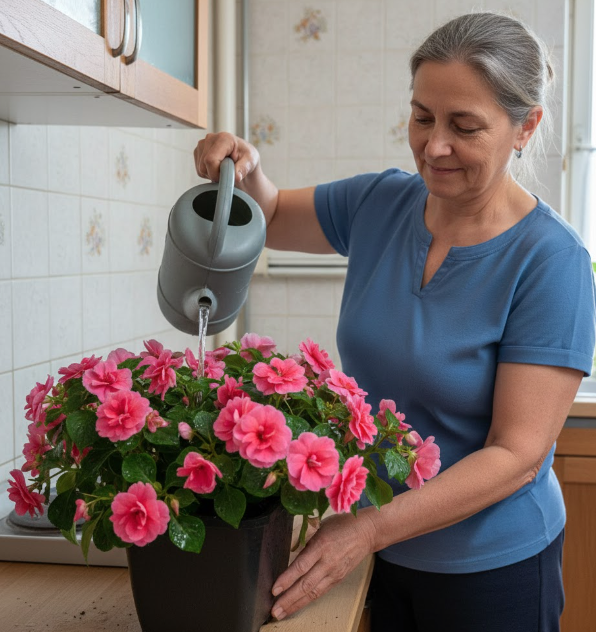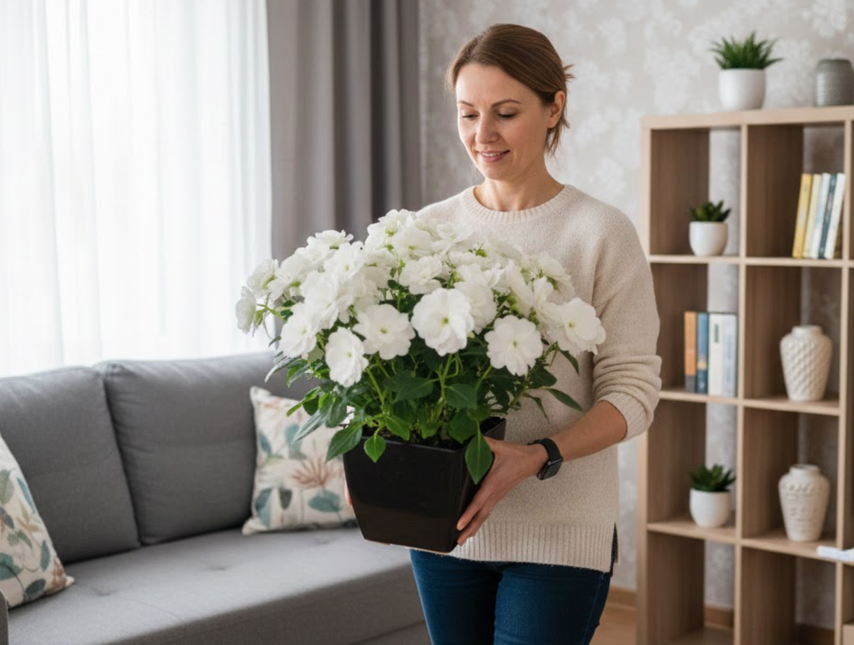Кімнатний махровий бальзамін «Навруз» добре адаптується до звичайного квартирного мікроклімату, не потребує складного догляду та підходить навіть тим, хто раніше не вирощував кімнатних рослин.