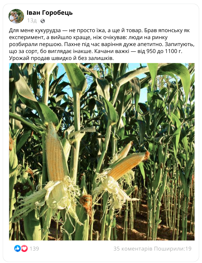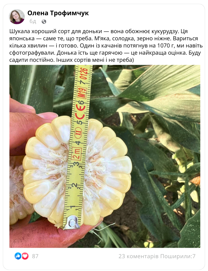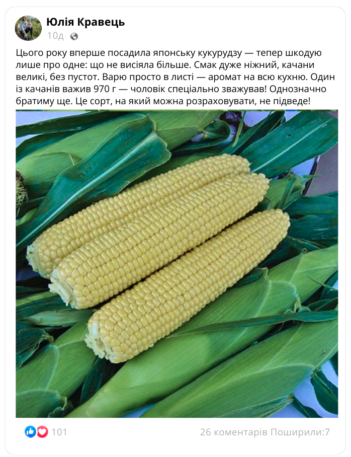 Діє спеціальна ціна на насіння японської солодкої кукурудзи: